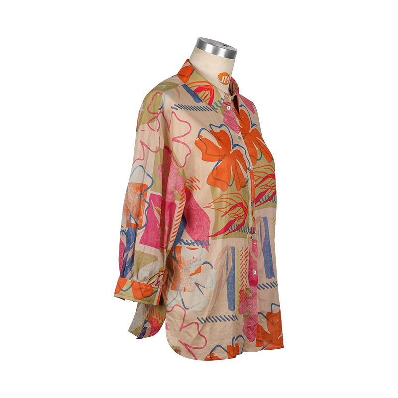 If you are interested in our Слегка прозрачная шелковая рубашка средней длины с принтом на рукавах or have any questions, please contact us.